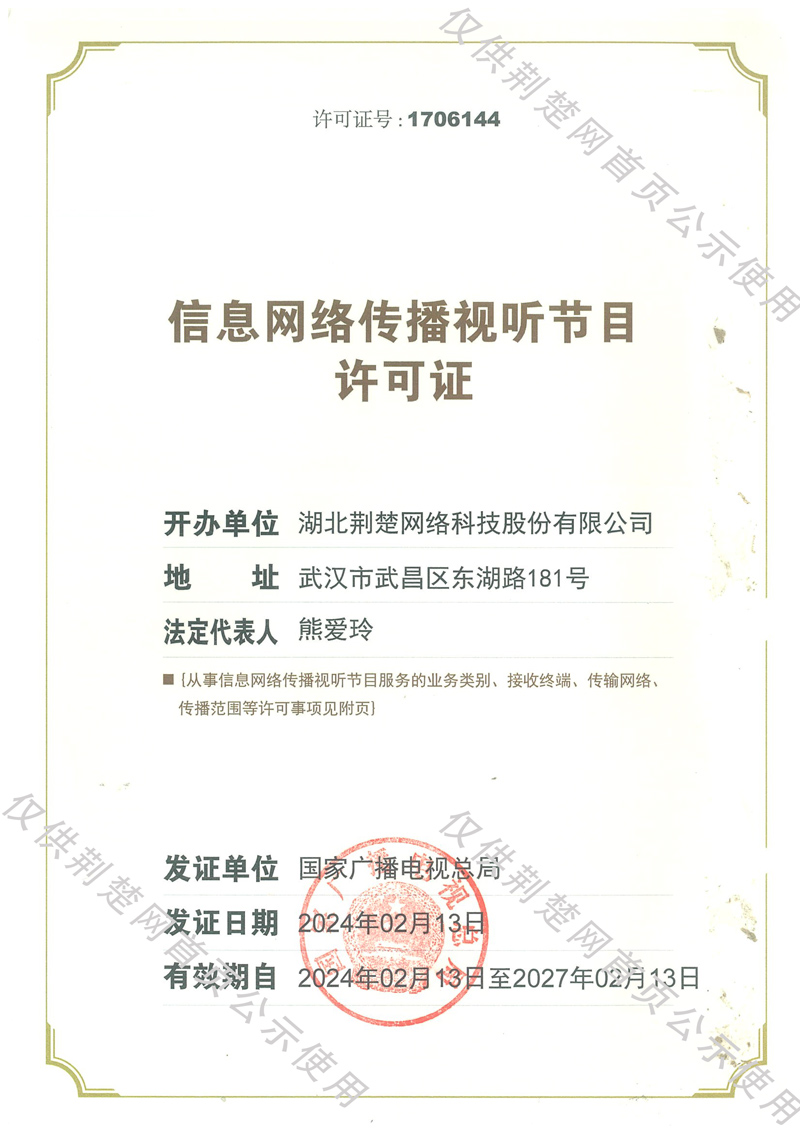 廣播電視節(jié)目制作經(jīng)營(yíng)許可證(鄂)字第00011號(hào)