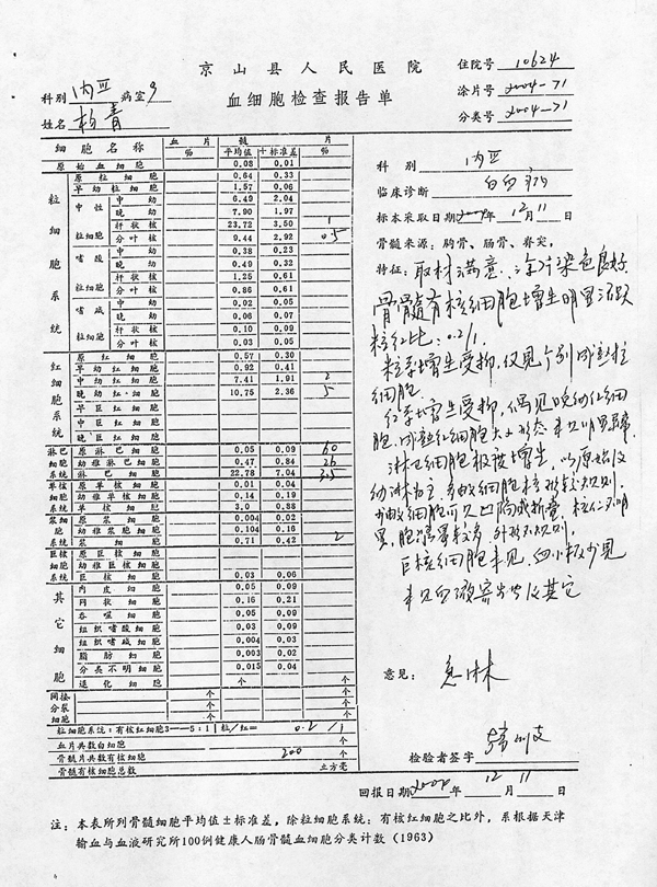 楊青血細(xì)胞檢查報告單(圖)