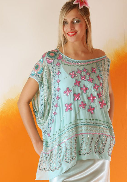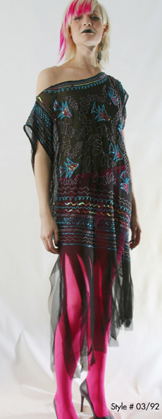 現年63歲的Zandra Rhodes,是英國乃至世界時裝界舉足輕重的人物,她所設計的朋克時裝在上個世紀70年代曾經風靡一時,并曾為Jackie Onassis, Diana Ross, Diana王妃設計造型。后來,隨著中性色調的流行,她用色鮮明、圖案大膽的設計風格逐漸淡出時裝舞臺;但是,在進入本世紀之后,新一代的年輕人又開始欣賞起她獨特的品位。