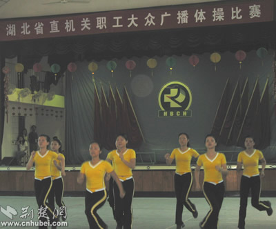 荊楚網(wǎng)消息(記者吳彬彬 馮海燕)今天上午,湖北省直機(jī)關(guān)工會(huì)、省機(jī)關(guān)體育協(xié)會(huì)在省腫瘤醫(yī)院舉行了省直機(jī)關(guān)職工大眾廣播體操比賽,共有來(lái)自省委辦公廳、省人大辦公廳等28家省直單位近700名職工參加了此次比賽。