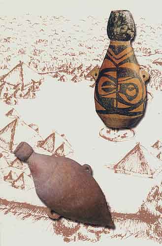 魚鳥(niǎo)紋葫蘆形彩陶瓶:水器(高29厘米)