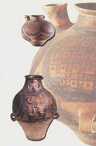 彩陶人像陶壺:水器(下,高34厘米)[相關鏈接]:20世紀中國百項考古大發(fā)現(xiàn)(1-20)21、大溪遺址(圖)22、城頭山遺址(圖)23、屈家?guī)X遺址(圖)24、崧澤遺址(圖)25、馬家窯遺址(圖)26、柳灣墓地(圖)27、牛河梁遺址(圖)28、城子崖遺址(圖)29、良渚文化遺址群(圖)30、石家河遺址群(圖)31、陶寺遺址(圖) 32、王城崗遺址(圖)33、齊家坪遺址(圖)34、卡若遺址(圖)35、石峽遺址(圖) 36、東灣仔北遺址(圖)37、圓山遺址(圖)38、二里頭遺址(圖)39、東下馮遺址(圖)40、夏家店遺址(圖)