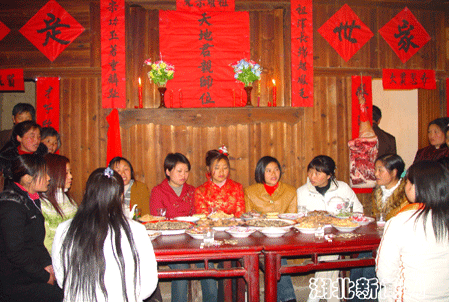 今年1月,該縣文化部門在采花鄉(xiāng)找到完整的“唐祭儀式”藝人班子。十幾名藝人雖然在解放后都沒有再進行過“告祖”儀式,但整個程序記得十分清楚。經(jīng)協(xié)商策劃,決定利用男女雙方實景把“告祖”及土家婚俗完整真實拍攝下來。3月28日,市縣兩級文化工作專班和十六名民間藝人開赴傅家堰火山村,日夜奮戰(zhàn)4天,終于把“告祖”的整個程序以寫實手法拍攝下來。同時,還拍攝到了土家婚俗中背新娘、吃雞蛋茶、抬花轎、陪十弟兄、陪十姊妹的珍貴鏡頭,把土家婚俗完整記錄了下來,為項目的申報工作進一步夯實了基礎(chǔ)。