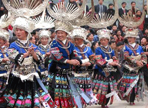 通常我們把一年的開始稱為過年,即文獻(xiàn)中說的“歲首”。明代郭子章《黔記·諸夷》就提到過苗年的時(shí)間:“(東苗、西苗)以十月望日為歲首!鼻∧觊g《鎮(zhèn)遠(yuǎn)府志·風(fēng)俗》記載:“(苗)以十月為歲首!泵缱謇碓~《賈》中說,過去苗族沒有歷法,后來由定拉和定圣,天神和地神來制定了歷法、度量衡和各種習(xí)慣法。