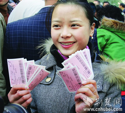 昨天上午9時許,在武漢某勞務(wù)公司工作的四川打工妹譚梅,攥著剛剛打印出來的一沓火車票,眉開眼笑:她和她的同事們,今年春節(jié)回家不用再擔(dān)心車票了!