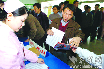 記者在醫(yī)院體檢登記冊上發(fā)現(xiàn),除湖北省各地區(qū)來漢的務(wù)工人員外,還有不少農(nóng)民工來自四川、安徽、江西、河南等地。據(jù)院方介紹,除不屬于此次服務(wù)范圍的武漢市7個中心城區(qū)市民外,其他前來體檢的外來務(wù)工人員都享受了免費服務(wù)。