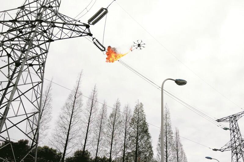 據(jù)現(xiàn)場(chǎng)的電力工人介紹,檢修高壓線并不難,難就難在要經(jīng)常性地清理雜物。高壓線上往往附著大量的垃圾袋、地膜、孔明燈等,清除是一個(gè)頭疼的問(wèn)題。使用無(wú)人機(jī)可以輕松清除雜物。作業(yè)時(shí),通過(guò)圖像測(cè)出高壓線的相對(duì)位置,再對(duì)線上的附著物噴火,這樣就可以清理掉異物。 楚天都市報(bào)記者周鵬 通訊員江博黃江林?jǐn)z影報(bào)道
