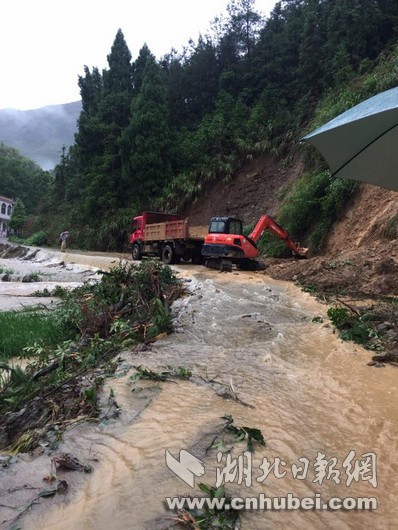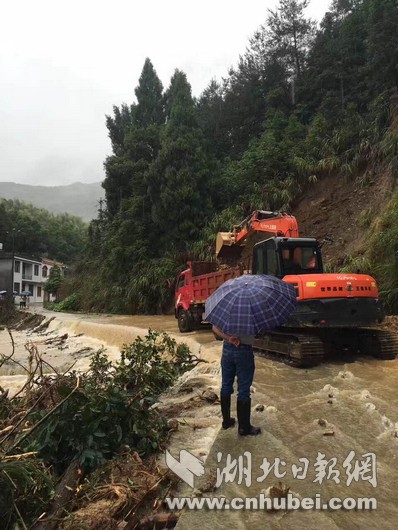 湖北日報網(wǎng)訊(全媒體記者張愛虎、通訊員汪淑琴、陳迪新)7月1日上午9點,崇陽縣港口鄉(xiāng)北山村五組發(fā)生山體滑坡,2000多立方米的泥沙樹木,從半山腰傾瀉而下,瞬間堵塞河道,沖向農(nóng)田,十幾畝農(nóng)田受損,幸無人員傷亡。駐北山村的殘聯(lián)農(nóng)村工作隊正在該組查看汛情,見狀立刻疏散群眾。崇陽縣委縣政府高度重視,馬上轉(zhuǎn)移群眾,確保生命安全,省地質(zhì)專家、鄉(xiāng)政府干部和設(shè)備馬不停蹄趕到現(xiàn)場搶險,疏散群眾、掛繩隔離,豎立地質(zhì)警示標(biāo)志,用挖機(jī)清理路面塌陷的石頭。