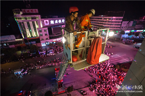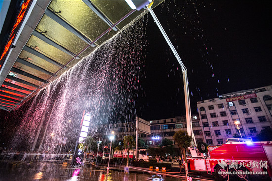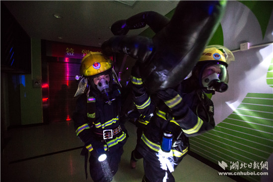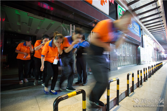 晚8時(shí),通城縣建筑體量最大的城市綜合體——三合中百購物廣場內(nèi),燈火通明,熙熙攘攘。忽然,警鈴大作。廣場因電線短路發(fā)生“火災(zāi)”,火勢迅速蔓延,大量人員被困。警情就是命令。廣場內(nèi)4個(gè)微型消防站立即按照預(yù)案,疏散廣場內(nèi)部人員,并啟動(dòng)固定消防設(shè)施,阻止火勢蔓延。