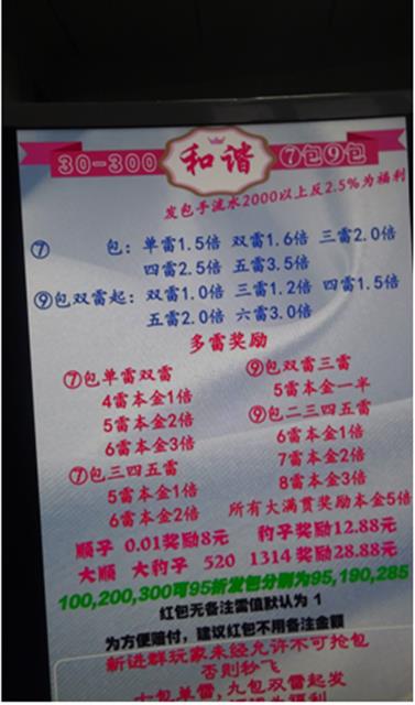 10月11日晚8時許,咸安公安分局治安大隊民警在對旅店業(yè)進行巡查時,發(fā)現(xiàn)該區(qū)一酒店1316房間住宿人員曹某、劉某、殷某、駱某等4人行跡可疑。經(jīng)對其隨身物品進行檢查,民警發(fā)現(xiàn)他們在電腦上利用QQ群搶紅包設(shè)置“中雷”的方式組織人員進行賭博,其所建立的“和諧家園30-300多雷群”成員達200余人,涉賭金額巨大。