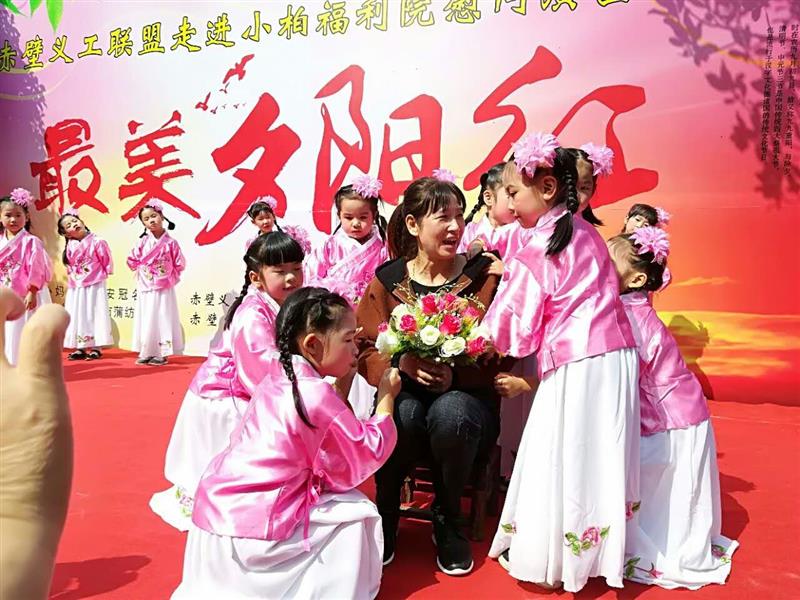湖北日報網(wǎng)訊(全媒體記者張文龍、通訊員黃柱、張海燕)“因為我們是一家人,相親相愛的一家人……”10月28日,在赤壁市赤壁鎮(zhèn)小柏村福利院,《相親相愛一家人》的歌聲響徹天際。當(dāng)天,農(nóng)歷九月初九,是我國傳統(tǒng)節(jié)日重陽節(jié),來自蒲紡歌舞團、赤壁中醫(yī)院、蘭心惠質(zhì)旗袍群、赤壁市機關(guān)幼兒園等單位的志愿者,相約來到福利院,陪58位老人歡度佳節(jié)。