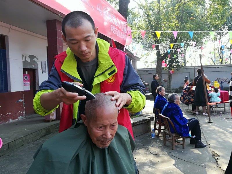 當(dāng)天上午8時,志愿者們走進(jìn)福利院。一下子來這么多人,老人們高興得合不攏嘴。拉完家常,志愿者們開始分工做服務(wù),有搭舞臺的,有準(zhǔn)備食材做菜、做飯、包餃子的、有擺桌椅板凳的、有分配水果零食的、有為老人理發(fā)、按摩、修指甲的、中醫(yī)院的護士免費給老人做體檢、小朋友為老人端茶等。