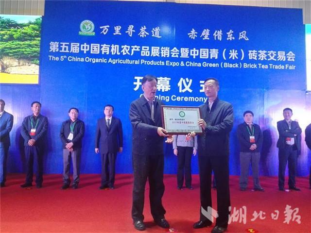 湖北日?qǐng)?bào)網(wǎng)訊(記者江萌、張文龍 通訊員童金健)3日,為期3天的第五屆中國(guó)有機(jī)農(nóng)產(chǎn)品展銷(xiāo)會(huì)暨中國(guó)青(米)磚茶交易會(huì)在赤壁開(kāi)幕。省人大常委會(huì)副主任王玲參加開(kāi)幕式。中國(guó)茶葉流通協(xié)會(huì)授予赤壁市“2017年度中國(guó)最美茶鄉(xiāng)”榮譽(yù)稱(chēng)號(hào)。