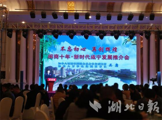 湖北日報訊(記者張文龍、通訊員饒紅斌)12月29日下午,咸寧市舉辦“不忘初心 再創(chuàng)輝煌”閩商十年·新時代咸寧發(fā)展推介會。會上透露,近10年來,咸寧市福建商會吸納會員企業(yè)400多家,聚集閩商3萬多人,投資總額600多億元,成為咸寧規(guī)模最大、人氣最旺、影響力最強的一個異地商會。