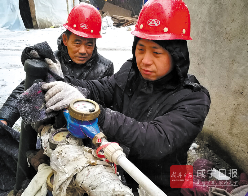 1月初,該公司投入35萬(wàn)元購(gòu)買防凍棉、黃沙等防凍物資,投入人力600余人次,對(duì)城區(qū)及向陽(yáng)湖、賀勝橋、咸嘉新城等農(nóng)村戶外水表水管進(jìn)行了包裹,為 41500塊戶外水表和2600處水管穿上“防凍衣”防止 水表水管“凍傷”。29日,室外氣溫低至-6℃,部分老舊小區(qū)的室外水管冰堵無(wú)水,水表被凍爆漏水。接到消息后,公司搶修人員迅速行動(dòng),爬梯登高,蹚雪化冰,更換水表。