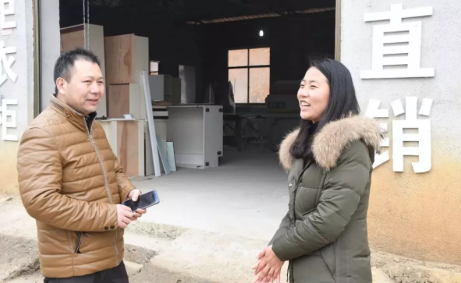 程桔(右)在村中走訪返鄉(xiāng)創(chuàng)業(yè)人員。