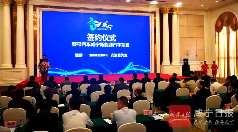 4月12日,咸寧市舉行野馬汽車咸寧新能源汽車項目簽約儀式。市委書記、市人大常委會主任丁小強,富臨集團(tuán)董事長安治富,市委副書記、市長王遠(yuǎn)鶴,富臨集團(tuán)副總經(jīng)理藤明波,四川野馬汽車股份有限公司總經(jīng)理譚建偉見證簽約。