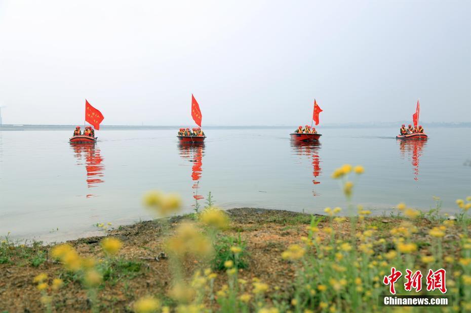 湖北赤壁消防舉行防汛抗洪演練。 徐聰聰 攝