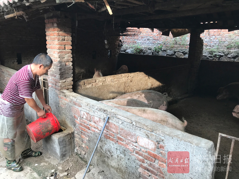 記者靠近看到,十余桶裝滿的潲水堆放在一旁,瓦房?jī)?nèi)數(shù)十頭豬正在嗷嗷待食,一男子正在給豬準(zhǔn)備食物。