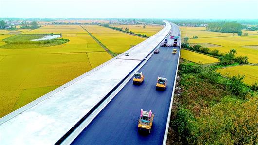 10月19日,施工單位在武深高速公路嘉魚北段進行路面瀝青攤鋪,該項目預計年底全部完工,通車后將緩解京港澳高速的交通壓力,嘉魚也將真正進入武漢1小時交通圈。
