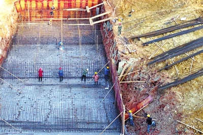 13日,咸安區(qū)向陽湖鎮(zhèn)北嶺村,施工人員在進行兩湖連通工程護坡和穿G351國道箱涵的施工。