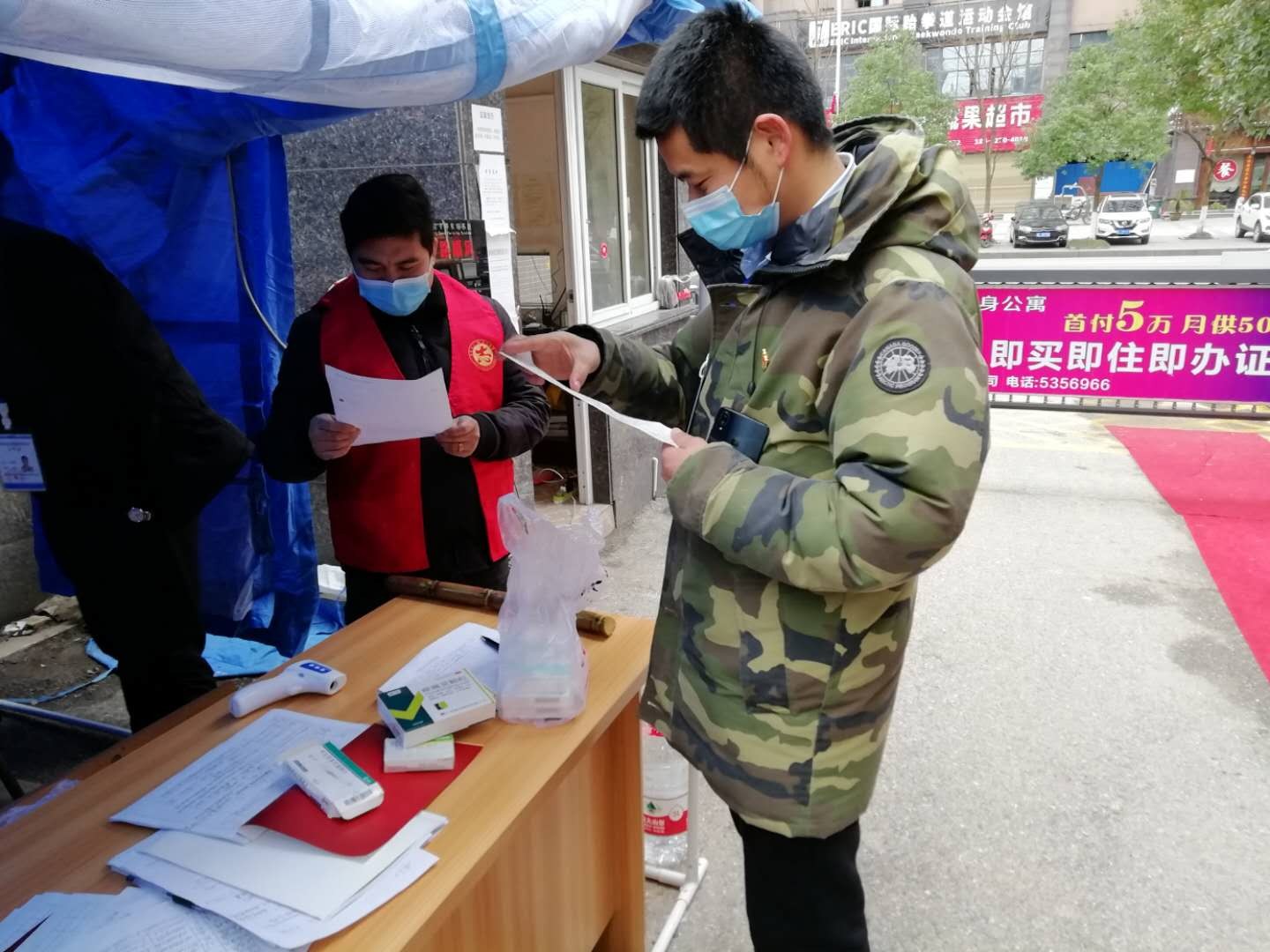 1月26日,大年初二,市新冠肺炎疫情防控指揮部調(diào)整部署,市商發(fā)集團(tuán)正式進(jìn)駐赤馬港立嘉誠(chéng)小區(qū),負(fù)責(zé)該小區(qū)疫情防控工作。經(jīng)排查,該小區(qū)共入住522戶(hù),人口1826人,其中武漢返鄉(xiāng)人員102人,黃岡、孝感、鄂州返鄉(xiāng)6人,其他地方返鄉(xiāng)人員108人。由于剛剛接手小區(qū),對(duì)居民不熟悉,給防控工作帶來(lái)一定難度。這時(shí),畢德軍的主動(dòng)加入,讓值守人員有了更足的信心。