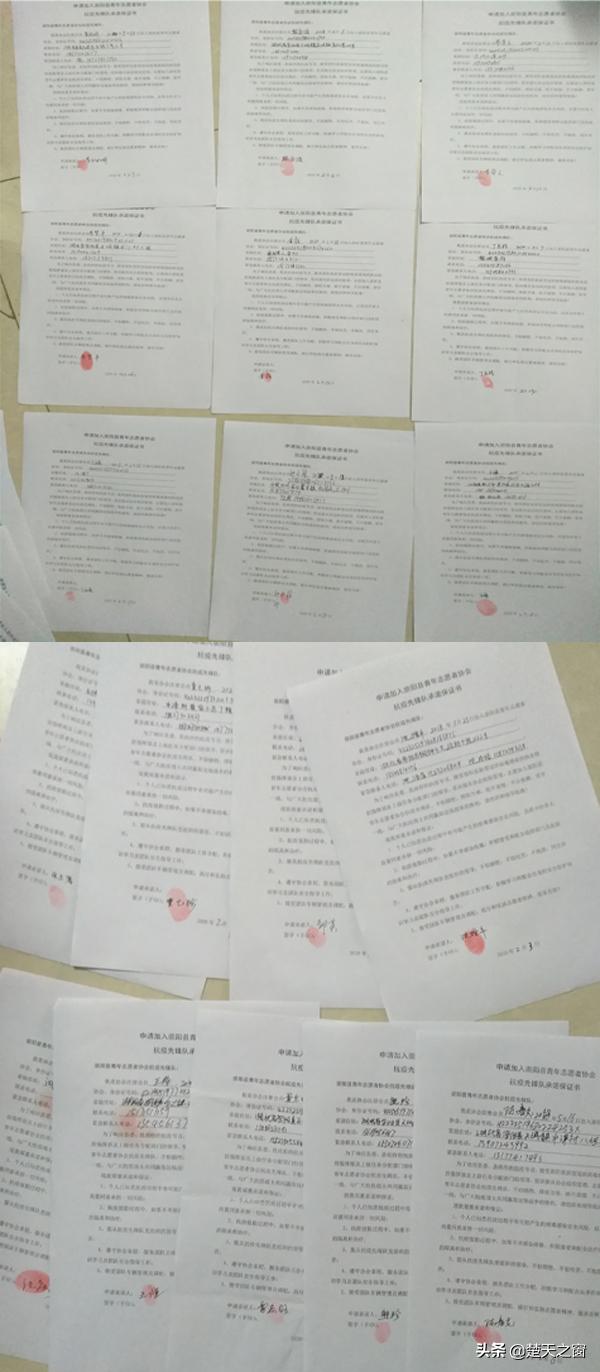 萬一感染了病毒怎么辦?早在成立崇陽縣青年志愿者協(xié)會(huì)抗疫先鋒隊(duì)時(shí),沈增平就第一個(gè)帶頭和隊(duì)員們一起簽下了承諾保證書“個(gè)人知悉所有風(fēng)險(xiǎn)和自愿承擔(dān)一切責(zé)任,抗疫值勤過程中,如果不幸感染病毒,積極接受和配合政府部門及醫(yī)院的隔離和治療;服從抗疫先鋒隊(duì)黨組織的領(lǐng)導(dǎo),不怕犧牲......”并按下了一個(gè)個(gè)鮮紅的手印。