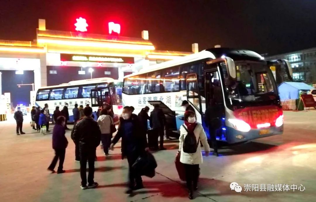 當晚,載著32名返崗員工的2臺大巴從湖南岳陽東站起程,21點10分順利返回崇陽,這些返崗員工在采取相應防疫措施后將陸續(xù)走上復工崗位。
