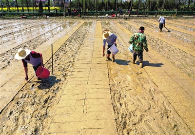 3月18日,咸安區(qū)俊敏種植專業(yè)合作社的社員們正忙著鋪秧盤、撒谷種。日前隨著氣溫回升,在做好新冠肺炎疫情防控的基礎(chǔ)上,咸安區(qū)搶抓農(nóng)時(shí)開展早稻春播生產(chǎn),組織當(dāng)?shù)厮膫€(gè)專業(yè)合作社搭建中型水稻集中育秧基地2個(gè)、小型水稻集中育秧基地2個(gè),通過規(guī)模化、標(biāo)準(zhǔn)化集中育秧提高種植效率,為村民提供水稻集中育秧和機(jī)械化插秧一條龍托管服務(wù),助力當(dāng)?shù)剞r(nóng)民早稻春播。
