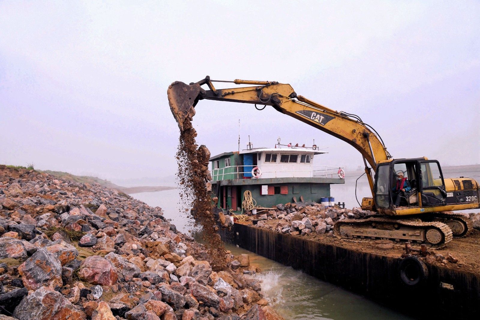 陸水河四清垸大堤全長450米,多年來的洪水侵襲致使河床下沉,堤岸崩裂。對(duì)此,赤壁市制訂了堤岸拋石護(hù)腳整治規(guī)劃。隨著疫情逐漸好轉(zhuǎn),赤壁市于3月18日啟動(dòng)工程維修計(jì)劃,投入大量人力物力。隨著挖掘機(jī)鐵臂的揮舞,一塊塊巨石墜落在河岸,為大堤的防洪能力再加一道保險(xiǎn)。