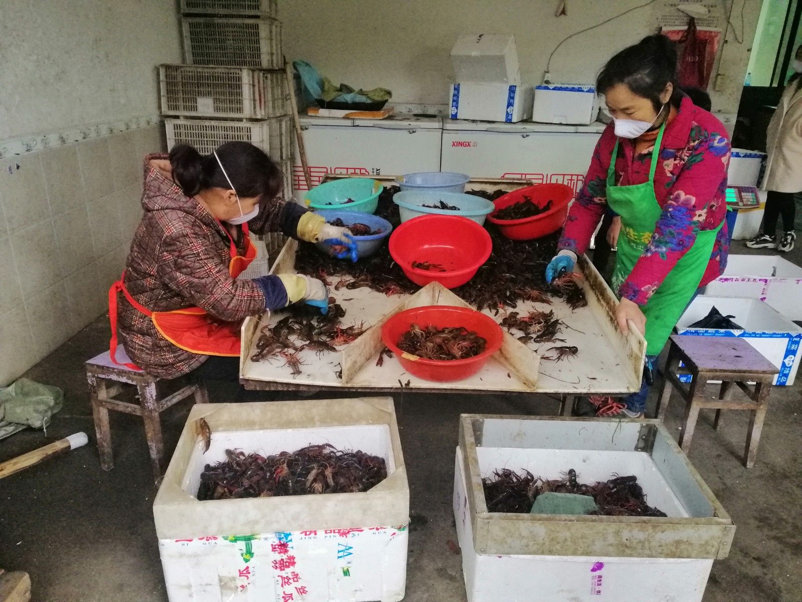 在官塘驛鎮(zhèn)泉口村神泉湖種養(yǎng)殖專(zhuān)業(yè)合作社,負(fù)責(zé)人童聰正在忙著將收購(gòu)來(lái)的小龍蝦進(jìn)行等級(jí)分揀打包,準(zhǔn)備發(fā)往全國(guó)各地。該合作社現(xiàn)在每天小龍蝦成交量3000斤左右,高峰期保持在1.5萬(wàn)斤,主要銷(xiāo)往江浙滬粵。