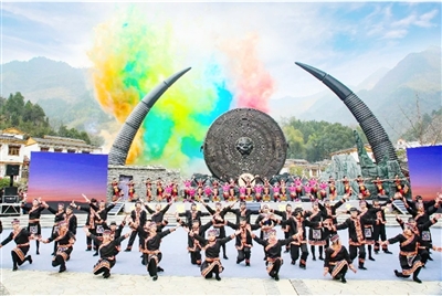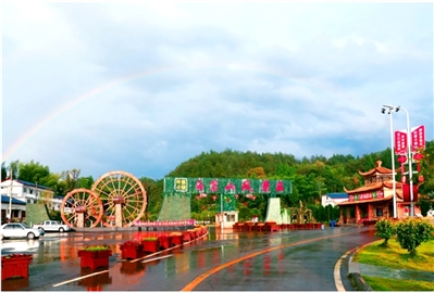 瑤祖故里大觀園內(nèi),古瑤壘石門樓,蘊(yùn)天地靈氣,攬關(guān)山萬重。天然青石壘砌的梯形門樓,古色古香,錯落有致。