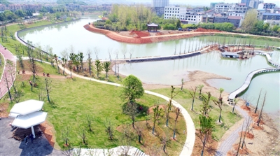 目前,還有9個污水塘整治工程完工,在準(zhǔn)備驗收工作。正在實施的子項目除龍?zhí)逗訚竦毓珗@,還有金泉灣和師專橋洞兩個排澇泵站,西南外環(huán)、原種場、老寶塔河等處污水管網(wǎng),大屋肖河河道示范段道路建設(shè)等共10個,工程均處于收尾階段。其余,還有3個子項目在等待進場。