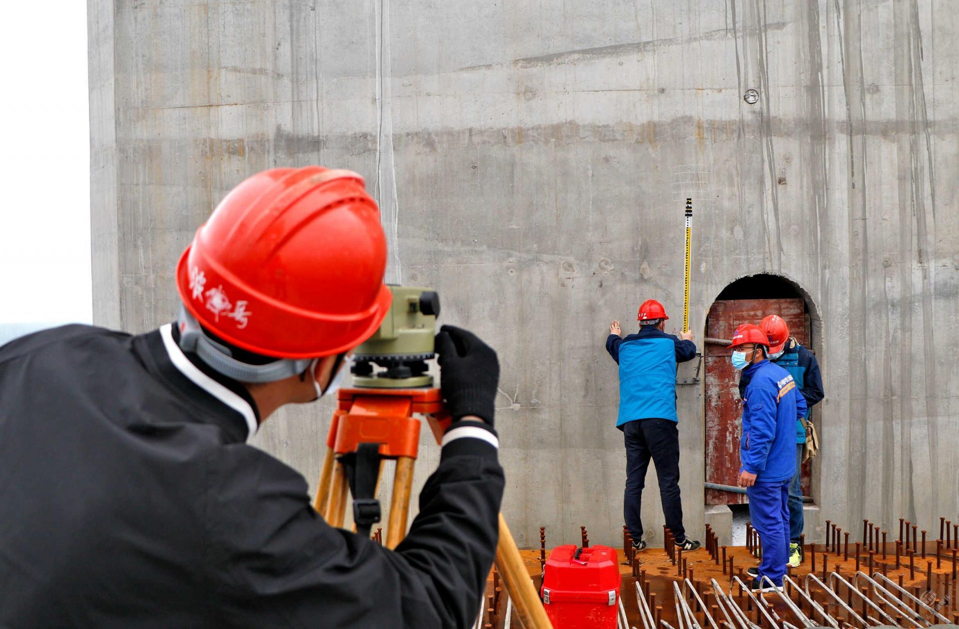 4月21日,赤壁長江公路大橋項目建設現(xiàn)場,技術(shù)人員為確保鋼梁準確吊裝,正在進行定位測量。