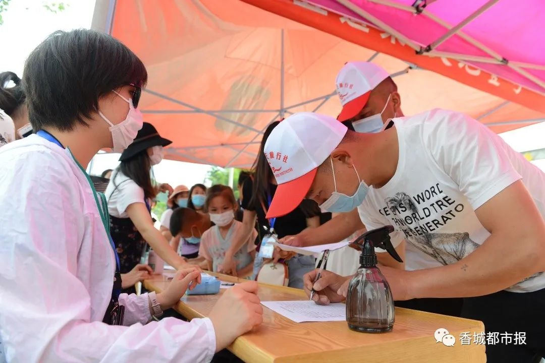 上午9點(diǎn),石門村渡槽下的廣場上已是一番熱鬧景象。入口處的登記臺擺著“防疫三寶 ”——體溫檢測儀、消毒酒精、口罩,所有人員通過健康測溫,登記完方可入場。