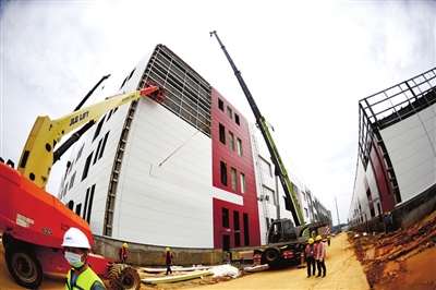 25日,赤壁市維達力實業(yè)(三期)項目正抓緊建設。該項目位于中伙鋪工業(yè)園,總投資35億元,占地面積163畝,主要生產(chǎn)微晶玻璃、柔性屏,是赤壁市重點在建項目之一。目前正在進行廠房墻面建設和設備安裝調試,預計7月全面建成投產(chǎn)。 咸寧日報全媒體記者 袁燦 攝