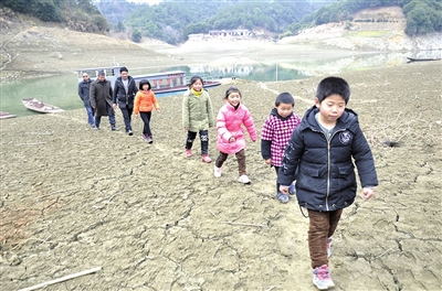 盤山教學(xué)點位于一座小島上,建在半山腰,望得見水,卻要到500米外的山下挑水吃。天一亮,王值軍就起床,拿起扁擔(dān)去挑水,平時一天跑5趟,夏天要跑8趟。挑好水,趕緊為在校住宿的學(xué)生燒水、做飯、洗衣服,再劃船去接附近學(xué)生……忙完這些,他才開始一天的教學(xué)。