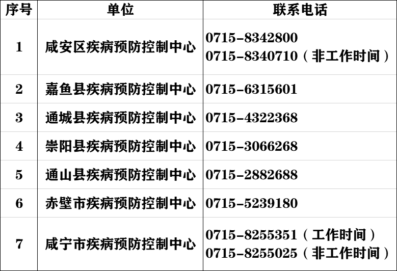 來源:咸寧市各地疾控中心