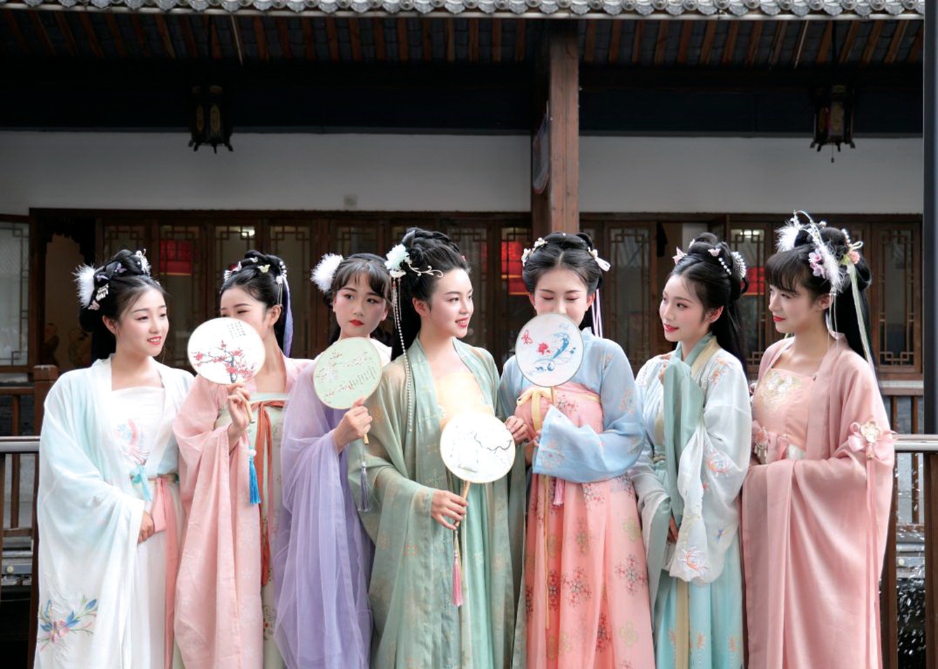 “仲夏苦夜短,開軒納微涼。姐妹們,如此炎熱,我們?yōu)槭裁匆竭@里來呀?”婉轉(zhuǎn)的聲音從遠處傳來,回首望去,七位顧盼生輝的美人站在橋上相談甚歡。晚報“七仙女”帶大家打卡朝鳳莊園,直播正式開始,小橋、烏篷船、露臺,每一處都有仙女們飄然的身影,她們或坐或站,伴隨著水塘里的霧氣,真像是從天上下凡,正在吃飯的食客都放下了筷子欣賞。