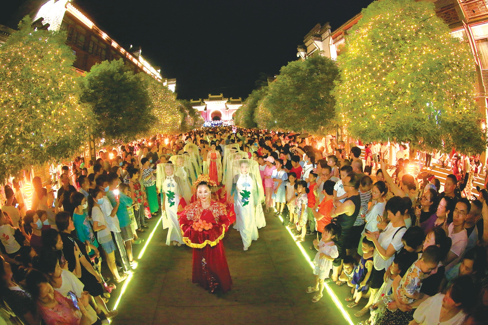 15日至16日晚,在武當(dāng)山玉虛街舉行的非遺廟會(huì),點(diǎn)亮夜經(jīng)濟(jì)。除了極具看點(diǎn)的武當(dāng)非遺文化展演,無(wú)人機(jī)天幕秀也令人震撼,此外,琳瑯滿目的美食極大滿足了游客的味蕾體驗(yàn),紅火熱鬧的玉虛街已成為游客夜游武當(dāng)?shù)拇蚩ǖ?。圖/記者 朱江 特約記者 范學(xué)峰