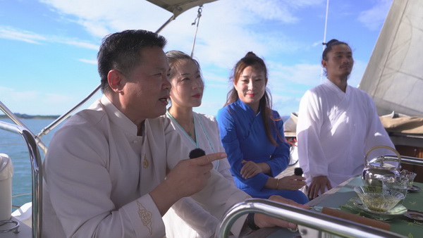 “采仙山之靈氣,納碧水之潤澤”。在碧波蕩漾的太極湖上,武當文化學者與愛好者圍繞煙波浩淼的丹江口水庫、舉世矚目的南水北調(diào)中線工程、72峰朝大頂?shù)莫毺仄嬗^、沉睡于漢水之下的均州古城、國學經(jīng)典《道德經(jīng)》,看老子像、眺天柱峰、尋水下城,品茶論道、談古論今,呈現(xiàn)出“泛舟江湖”的唯美意境。