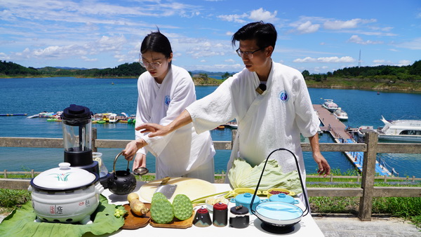 “大暑”是一年中天氣最熱、濕氣最重的時節(jié),此時節(jié)養(yǎng)生保健的重點是“防暑”和“祛濕”。泛舟歸來,武當文化學者與愛好者一起習練武當活骨養(yǎng)生功,品嘗新鮮嫩蓮制成的鮮藕涼茶、蓮子荷葉粥,感悟武當養(yǎng)生文化的魅力。