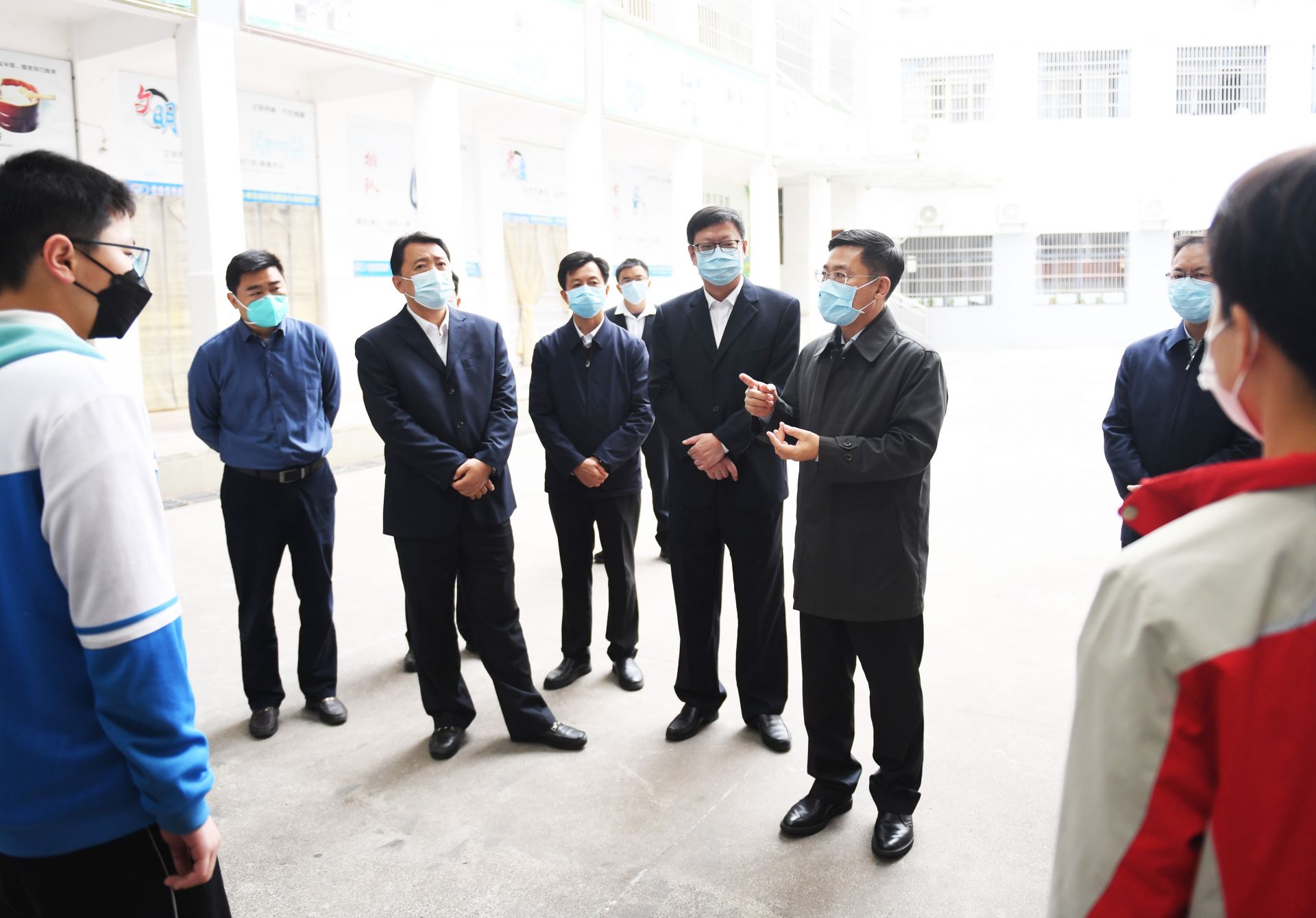 因前期篩查發(fā)現(xiàn)有陽性病例活動軌跡,崇陽縣眾望高中實行靜默管理,部分師生在校園內(nèi)接受健康監(jiān)測,他們的身體情況、生活保障和心理狀況牽掛著市領(lǐng)導(dǎo)的心。孟祥偉、楊軍來到學(xué)生宿舍樓下,在采取戴口罩、間隔一米等必要防護措施后,和被監(jiān)測學(xué)生、老師親切交流,詳細了解監(jiān)測措施落實、日常飲食及營養(yǎng)保障、心理疏導(dǎo)等情況。