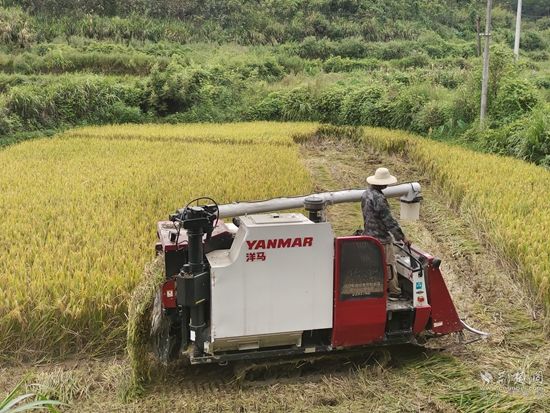 荊楚網(湖北日報網)訊(通訊員 吳儀)11月6日,通山縣南林橋鎮(zhèn)湄溪村鄉(xiāng)林合作社再生稻種植基地上千余畝水稻大部分收割完畢,收割機在稻田里穿梭收尾,一株株稻穗換來金燦燦的稻粒,鄉(xiāng)間沃野一派豐收景象。