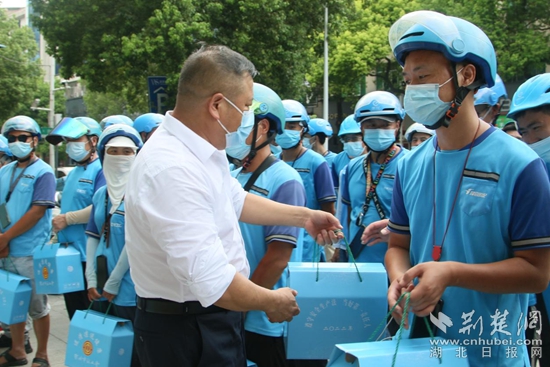 在“餓了么”配送點(diǎn)慰問餓了么新業(yè)態(tài)產(chǎn)業(yè)工人。通訊員 供圖