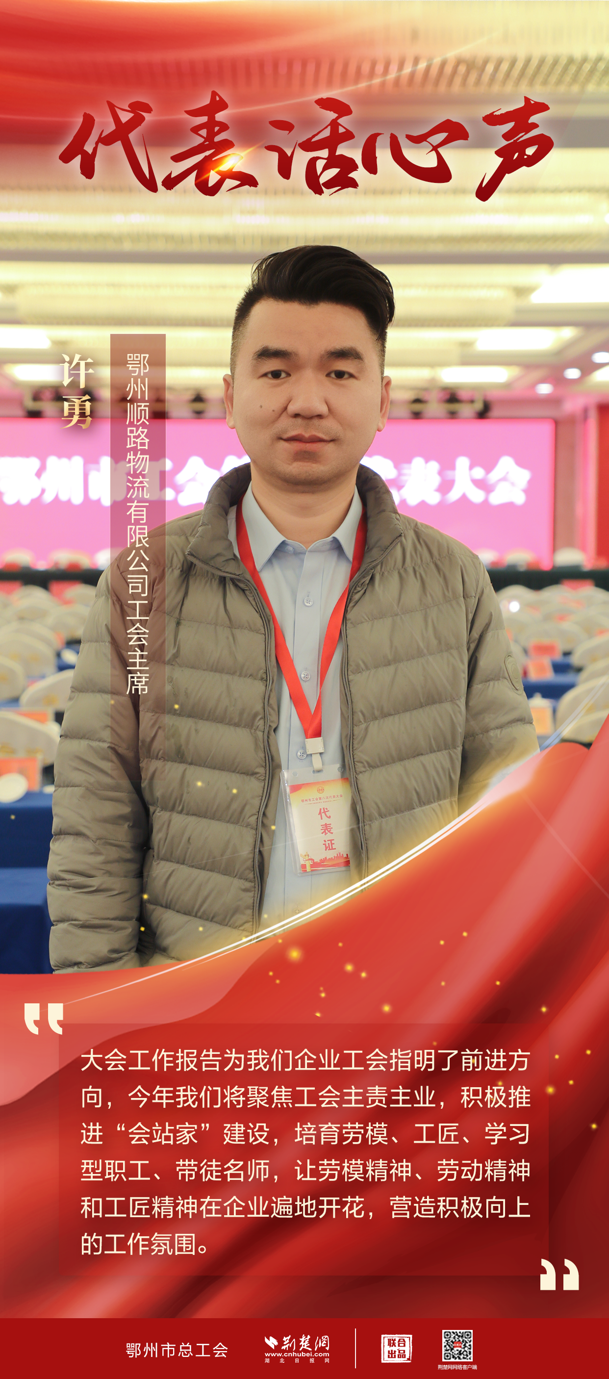 荊楚網(wǎng)(湖北日?qǐng)?bào)網(wǎng))訊(記者 姜夢(mèng)瑤 實(shí)習(xí)生 趙永春、張玖杰 通訊員 魏君)1月4日,鄂州市工會(huì)第八次代表大會(huì)開幕,來自全市各行各業(yè)的233名代表一同談發(fā)展、說變化、道期盼。