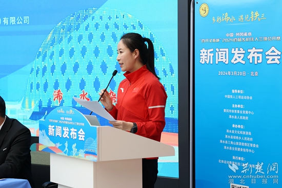 現(xiàn)場(chǎng),2000年悉尼奧運(yùn)會(huì)競(jìng)走奧運(yùn)冠軍王麗萍向鐵人三項(xiàng)運(yùn)動(dòng)愛(ài)好者們發(fā)出邀請(qǐng),今年四月相約湖北浠水。