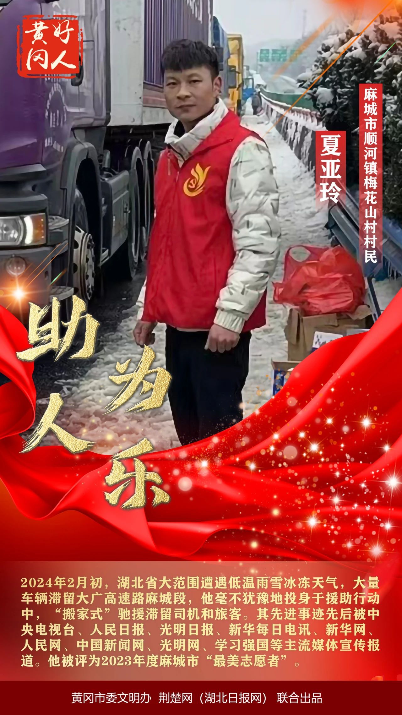 “黃岡好人·榜樣力量”。近日,黃岡市委文明辦公布2024年第一季度“黃岡好人”。