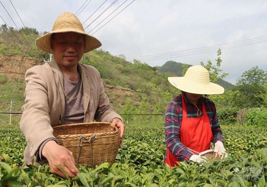 人間四月芳菲盡,山中茶園才開張。順著蜿蜒山道一路向上,文峪河村里,一畦畦碧綠的茶園郁郁蔥蔥,隨處可見茶農采茶忙碌的身影 。