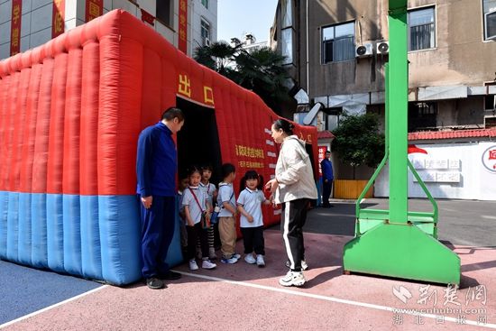 在操場,消防員指導(dǎo)小朋友試穿“滅火戰(zhàn)斗服”、佩戴消防頭盔、體驗(yàn)火場逃生帳篷,詳細(xì)講解火災(zāi)事故的危險(xiǎn)性以及如何正確撥打火警電話、火場逃生自救方法等消防安全知識(shí),讓小朋友們對(duì)火災(zāi)有了更深刻地認(rèn)識(shí)。